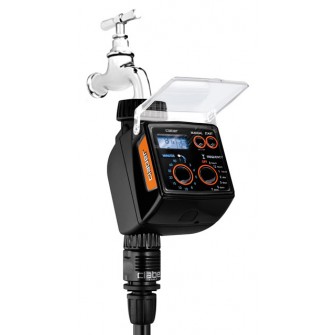 Εύκολος προγραμματισμός με δύο ψηφιακά κουμπιά, το ένα επιλέγει 14 χρόνους ποτίσματος και το άλλο 7 συχνότητες για κάθε γραμμή. 98 προκαθορισμένα προγράμματα (+ απενεργοποίηση). Οθόνη LCD με οπίσθιο φωτισμό που εμφανίζει τις διάφορες λειτουργίες (προγραμματισμός, χρόνος που απομένει, χρόνος ποτίσματος, αισθητήρας βροχής).