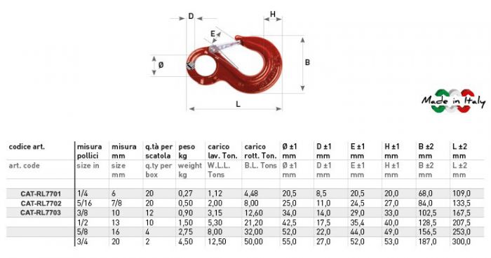 EYE SLING HOOK WITH LATCH 1T 6MM